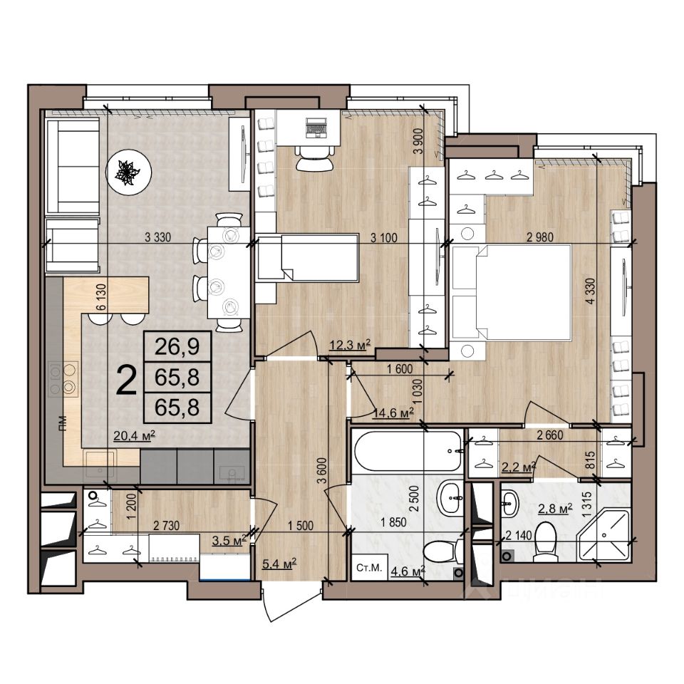Квартира 153, 2-комнатная в ЖК Полярная звезда от компании "Зеленый сад". Московский район, развитая инфраструктура. Купить квартиру в новостройке в Рязани: 65.8 кв.м., 21 этаж. Кухня — 20.4 кв.м. Ипотека, Trade-In. Подробности на нашем сайте