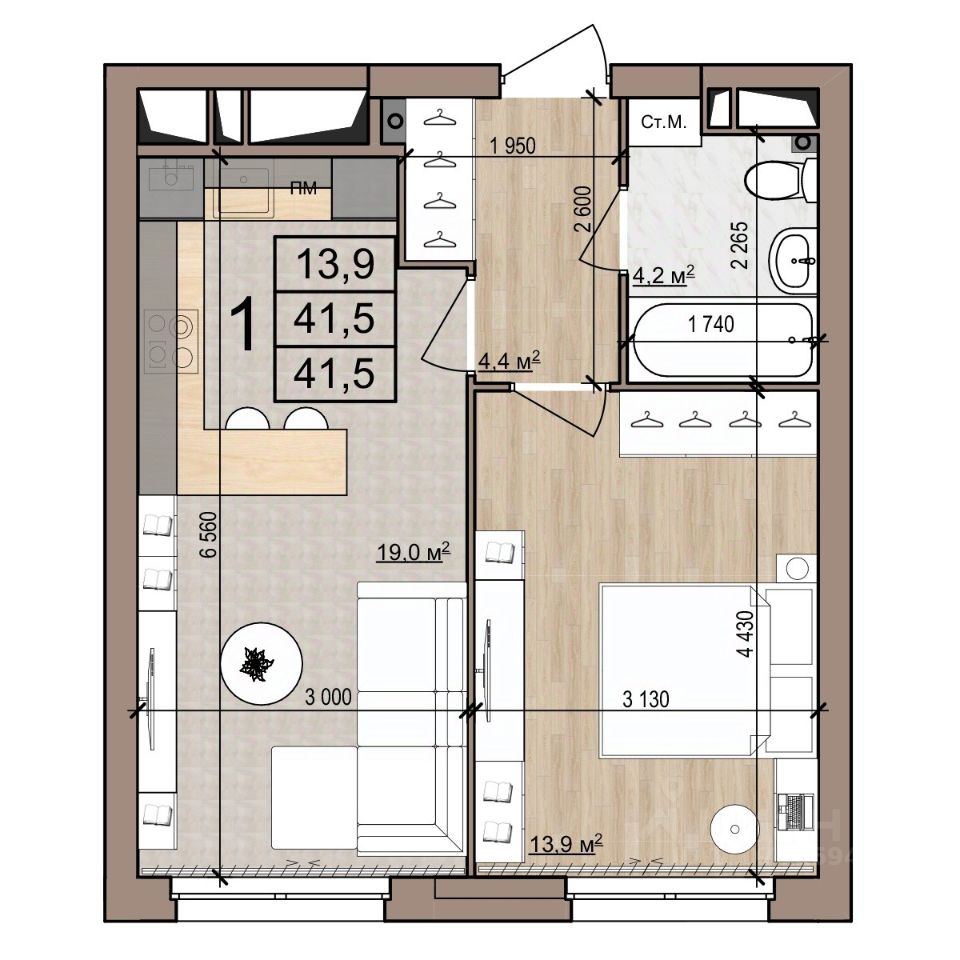 Квартира 176, 1-комнатная в ЖК Полярная звезда от компании "Зеленый сад". Московский район, развитая инфраструктура. Купить квартиру в новостройке в Рязани: 41.5 кв.м., 24 этаж. Кухня — 19 кв.м. Ипотека, Trade-In. Подробности на нашем сайте