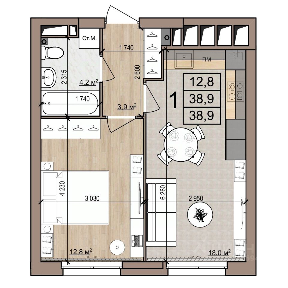 Квартира 257, 1-комнатная в ЖК Полярная звезда от компании "Зеленый сад". Московский район, развитая инфраструктура. Купить квартиру в новостройке в Рязани: 38.9 кв.м., 9 этаж. Кухня — 18 кв.м. Ипотека, Trade-In. Подробности на нашем сайте