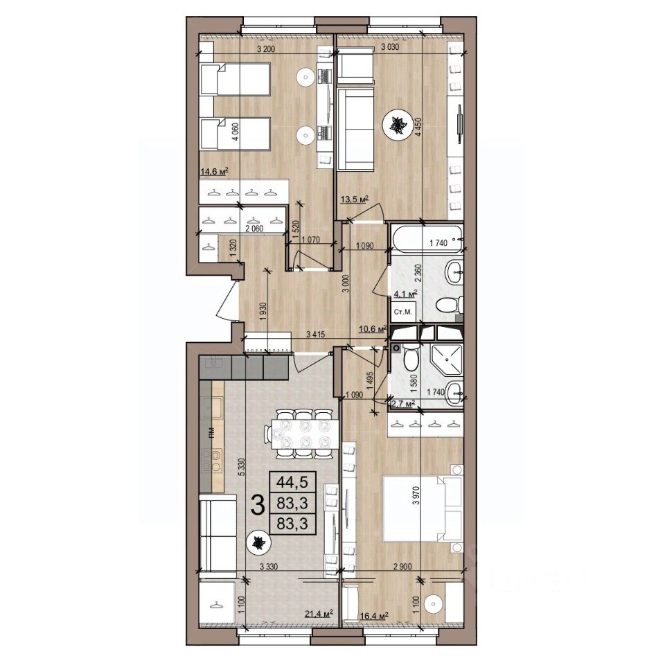 83,3 м²