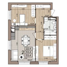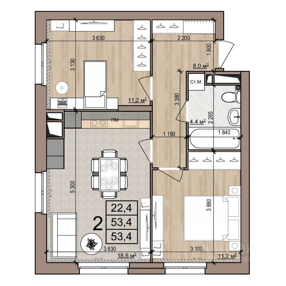 Квартира 382, 2-комнатная в ЖК Полярная звезда от компании "Зеленый сад". Московский район, развитая инфраструктура. Купить квартиру в новостройке в Рязани: 53.4 кв.м., 21 этаж. Кухня — 18.6 кв.м. Ипотека, Trade-In. Подробности на нашем сайте