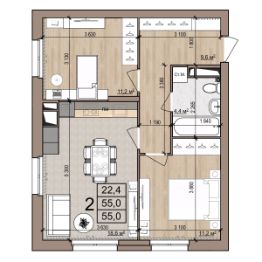 Квартира 262, 2-комнатная в ЖК Полярная звезда от компании "Зеленый сад". Московский район, развитая инфраструктура. Купить квартиру в новостройке в Рязани: 55 кв.м., 9 этаж. Кухня — 18.6 кв.м. Ипотека, Trade-In. Подробности на нашем сайте