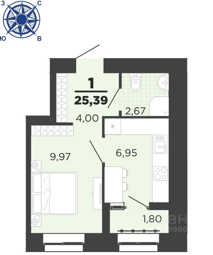 Общая площадь25,39 м²
