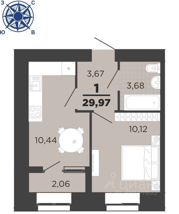 Общая площадь29,97 м²