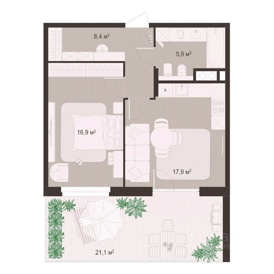 16,9 м²