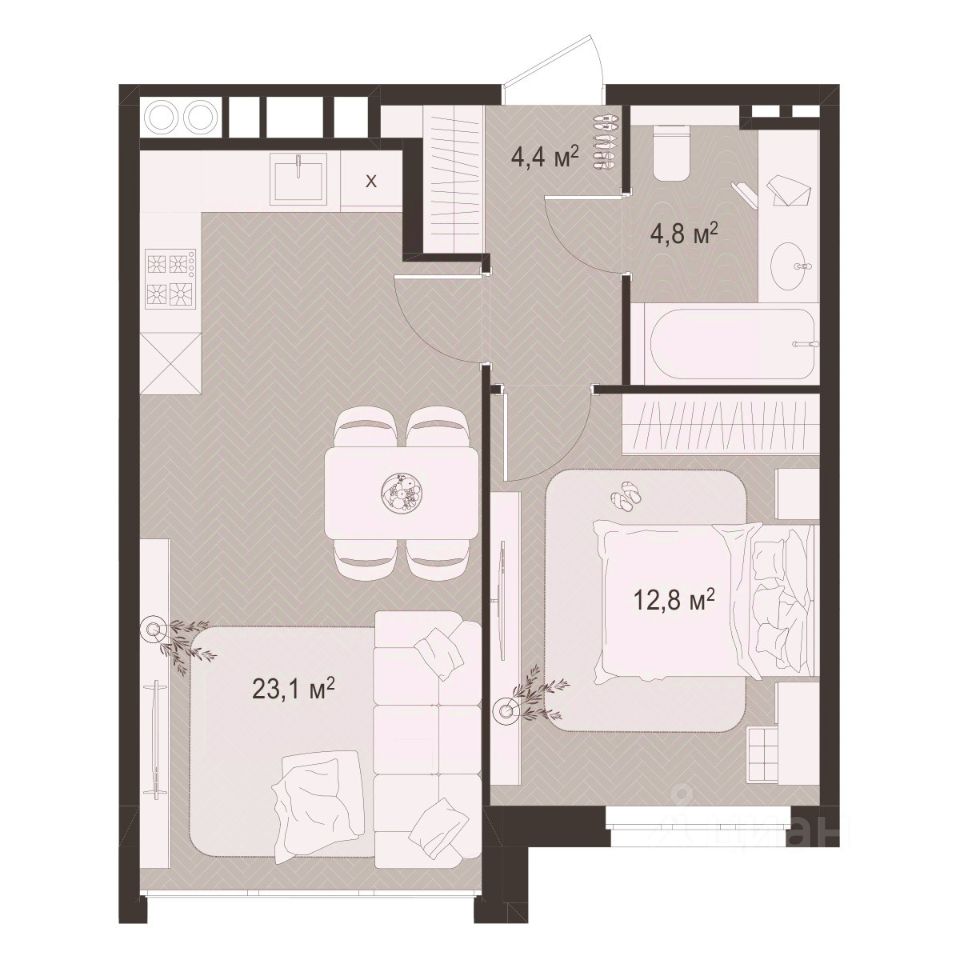 Жилая площадь12,8 м²