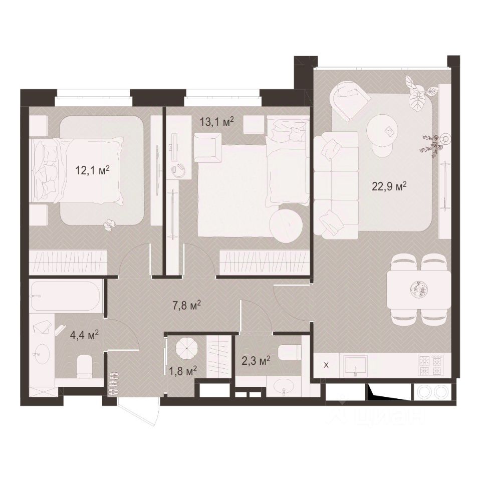 Общая площадь64,8 м²