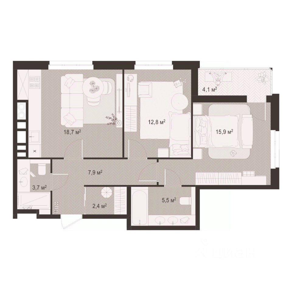 18,7 м²