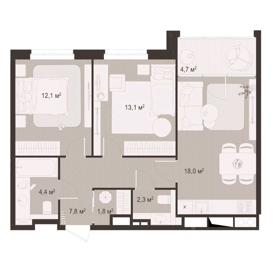 Общая площадь64,2 м²