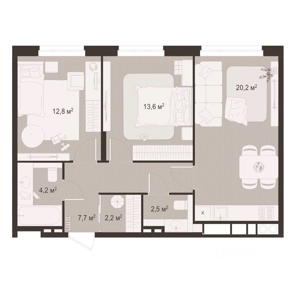 Общая площадь63,2 м²