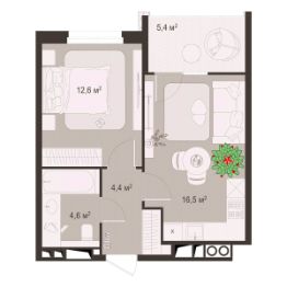 Жилая площадь12,6 м²