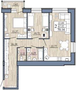 2-х комнатная квартира в жилом комплексе СТРИЖИ СРОК СДАЧИ ДОМА - 2 квартал 2027 года. Европланировка! Нестандартная двухкомнатная квартира площадью 70.14 кв. м для ярких натур! Эффектная кухня-гостиная 22.77 кв. м станет сценой для вашего гостеприимства. Особый шарм — комната с выходом на лоджию 2.62 кв. м, где можно создать зелёный уголок. Вторая изолированная комната (10.72 кв. м) — место для уединения. Раздельный санузел обеспечит комфорт, а окна на две стороны наполнят квартиру живым светом. Жильё с характером для неординарных людей! В наших квартирах вам не захочется что-то менять или переделывать. Мы позаботились о том, чтобы все было на высшем уровне, а ремонт не отнял много времени и средств. Вот основные преимущества: Отделка "White Box Premium": ЖК Стрижи представляет собой первый в Рязанской области жилой комплекс, где во всём комплексе реализована премиальная предчистовая отделка White Box Premium. Все квартиры передаются с идеально подготовленными поверхностями, готовыми к финишной отделке: стены выровнены, оштукатурены белоснежным цветом и идеально подходят для поклейки обоев любой плотности (кроме самых тонких). В санузлах и на лоджиях применена суперстойкая цементная штукатурка! Также в комплект входит надежная металлическая дверь. Окна премиум-класса: Современные окна обеспечивают отличную тепло- и звукоизоляцию, создавая комфортные условия внутри квартиры и защищая от внешних шумов. Индивидуальное отопление: Каждая квартира нашего дома оборудована индивидуальным газовым котлом. Вы можете создать комфортную температуру в любое время года, независимо от погодных условий. Приточная вентиляция в каждой комнате: Обеспечивает свежий воздух и поддерживает оптимальный микроклимат, что особенно важно для вашего здоровья и благополучия. Теплые полы: Во входной зоне коридора, ванных комнатах и санузлах установлены тёплые полы. Система очистки воды: Гарантирует вам доступ к чистой и безопасной воде, что сделает повседневную жизнь более комфортной и здоровой. Ландшафтный дизайн: Эстетически продуманные территории с благоустроенными дорожками и украшающими насаждениями. Зеленые зоны для отдыха и прогулок, где каждый сможет насладиться свежим воздухом. Игровые и спортивные зоны: Оригинальные площадки для детей и современные оборудованные места для занятий спортом. Оборудование Work-out: Специально подготовленные зоны для активных тренировок на открытом воздухе и спокойного отдыха. Грамотное зонирование: Часть двора закрыта для автотранспорта, что обеспечивает безопасность и комфорт. Игровые и спортивные площадки удобно расположены в непосредственной близости к жилым помещениям. Комплекс предлагает многоуровневую систему безопасности, включая современные решения, такие как распознавание лиц, что создает дополнительный уровень уверенности для жителей. Развитая инфраструктура делает жизнь в СТРИЖАХ ещё более удобной: в пешей доступности находятся школы, детские сады, спортивные комплексы с бассейнами, поликлиники, магазины и