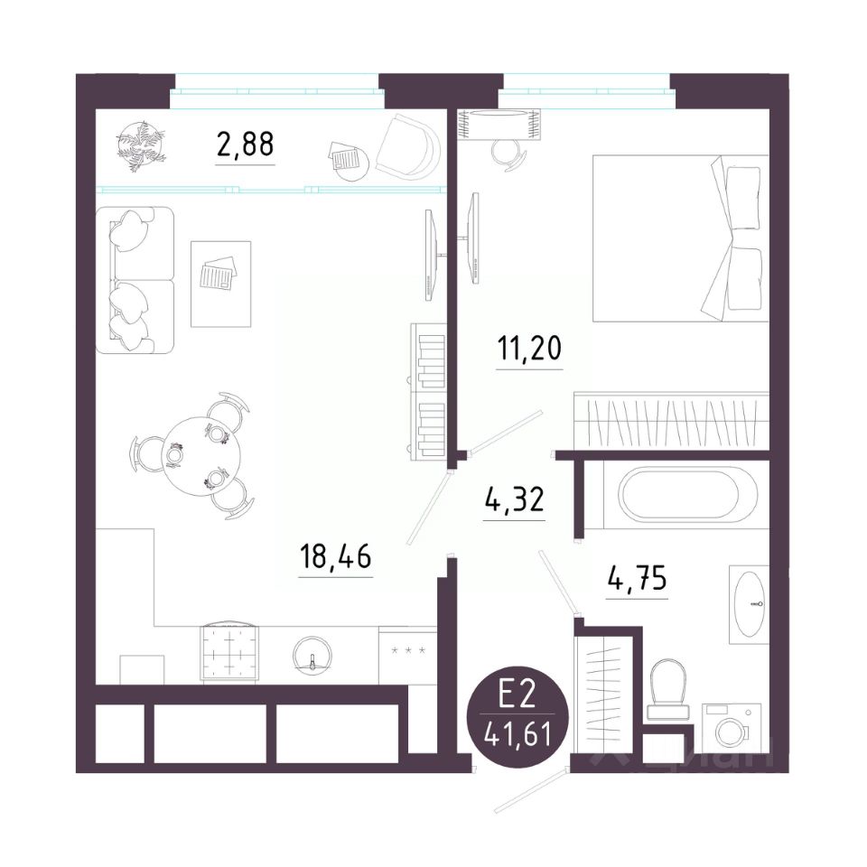 Общая площадь41,61 м²
