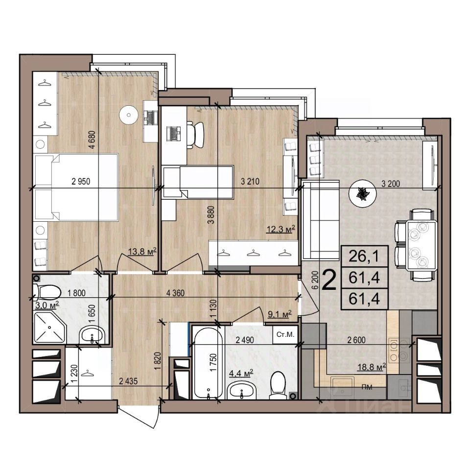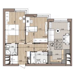 61,4 м²