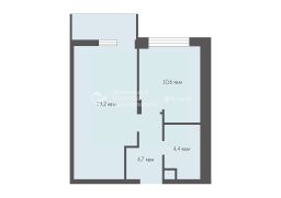 Общая площадь квартиры составляет 38,9 кв. м (по выписке), жилая — 10,6 кв. м, площадь кухни-19,2 кв. м.+ лоджия 3,5кв.м. Высота потолков — 2,7 м.