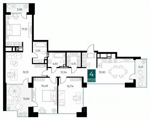 Общая площадь123,83 м²