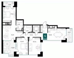 Площадь кухни19,9 м²