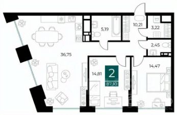 -Шикарная Кухня-гостинная 36,75кв.м., с панорамными окнами;