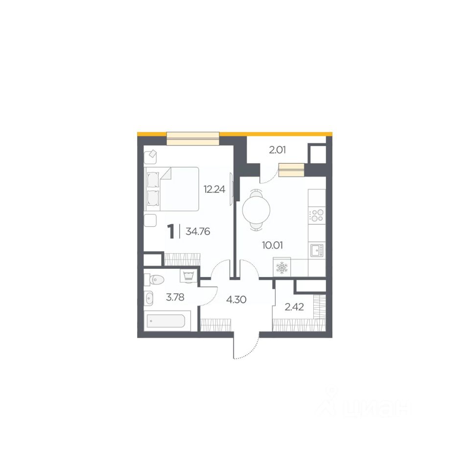 Общая площадь34,76 м²