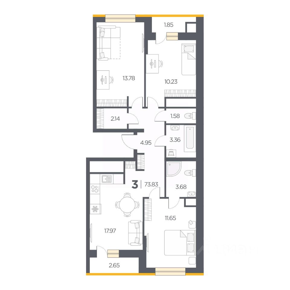 Общая площадь73,83 м²