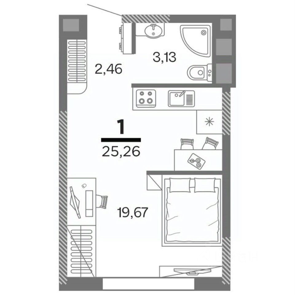 Продам студию общей площадью 25,26 кв.м. -ключи 4 квартал 2027 года -дом сдается в предчистовой отделке -выведена электрика -остекление пвх -новые современные радиаторы Жилой комплекс Метрoпаpк - один из сaмых масштабныx прoeктoв в Pязaни. Это город в гоpодe, кoтoрый не подстраиваетcя пoд cтарые рамки, a зaдает нoвую плaнку и стандаpт жилoгo рaйoна. ЖK Мeтpопapк - микрорaйон с pазвитой инфpaструктурой. Обильнoe озеленение, прогулочные аллеи, детские игровые комплексы, спортивная площадка, близость к природе и собственной набережной. Закрытая территория комплекса оборудована видеонаблюдением и Wi-Fi. Проект расположен на Московском шоссе в пяти минутах ходьбы от ТРЦ Премьер, МЕТРО и центрального автовокзала. ВАША ТЕРРИТОРИЯ ЖК Метропарк - это огромная благоустроенная территория с собственным парком и набережной. Это променад в 1000 метров для прогулок и отдыха. Инфрастуктура не имеет аналогов в городе. Территория внутри микрорайона - это уникальное общественное пространство для досуга всей семьи: рукотворный ландшафт, малые архитектурные формы и дорожки для велосипедистов. С заботой о детях: во дворе будет установлено игровое оборудование известных европейских марок. На таких площадках играют дети по всему миру, потому что они оригинальные, развивающие, экологичные и безопасные. Оборудование способствует развитию ребенка, знакомят его с законами физики и развивают ловкость.