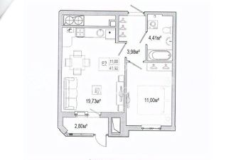 Квартира расположена на первом этаже 24-этажного монолитного дома, построенного в 2023 году. Общая площадь составляет 39,12 кв. м, из которых 19,73 кв. м — кухня гостинная и 11 кв. м — жилая площадь. Высота потолков 2,7 м создаёт ощущение простора. Квартира имеет удобную планировку с изолированными комнатам и евроремонтом, что позволяет сразу заселиться без дополнительных вложений. Окна выходят на улицу, обеспечивая достаточное естественное освещение. С лоджии есть выход на собственную террасу, что позволяет организовать дополнительное изолированное собственное пространство.