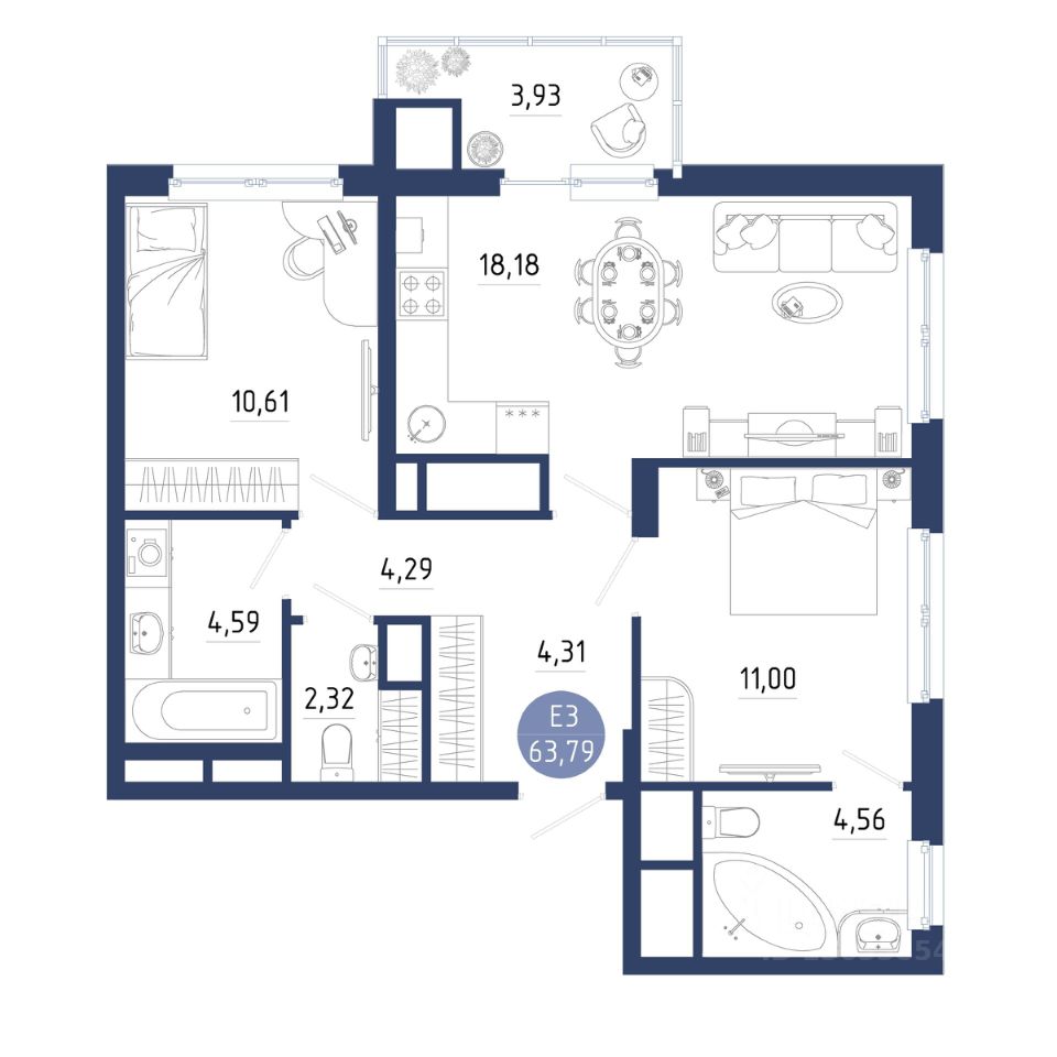 Общая площадь63,79 м²