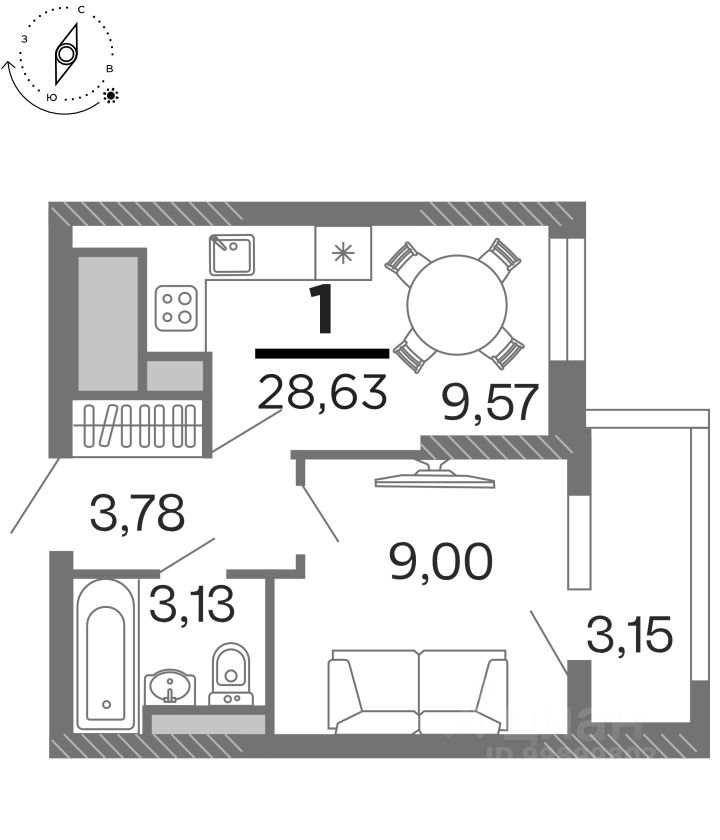 Продаётся 1-комнатная квартира в строящемся доме (Дом 4), срок сдачи: IV-кв. 2029, общей площадью 28.63 кв.м., на 12 этаже. Новый современный жилой комплекс комфорт-класса с прилегающей парковой территорией и уникальной архитектурой. Жилой комплекс гармонирует с зеленой зоной - район застройки расположен в непосредственной близости от березовой рощи и парка им. Гагарина, площадью в 130 тысяч м2. Локация дома располагает к занятиям спортом на свежем воздухе и приятным вечерним прогулкам в тени деревьев.