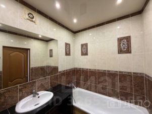 Сан узел в плитке, с полноценной ванной, есть вывод и место под полноразмерную стиральную машинку.