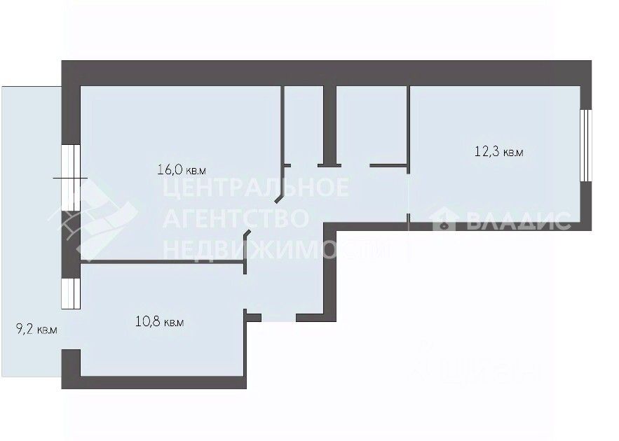 - Комнаты изолированные 16 кв.м и 12,3 кв.м