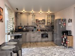 Двухэтажная квартира со своим земельным участком 3 сотки. Дом с индивидуальным отоплением, выполнен из теплого керамического блока с дополнительным утеплением, фасад оштукатурен и окрашен. Общая площадь 105 кв.м. плюс с выходом на деревянную террасу и свой огороженный участок. Большая кухня гостиная 30кв.м, два санузла, 4 изолированные комнаты.