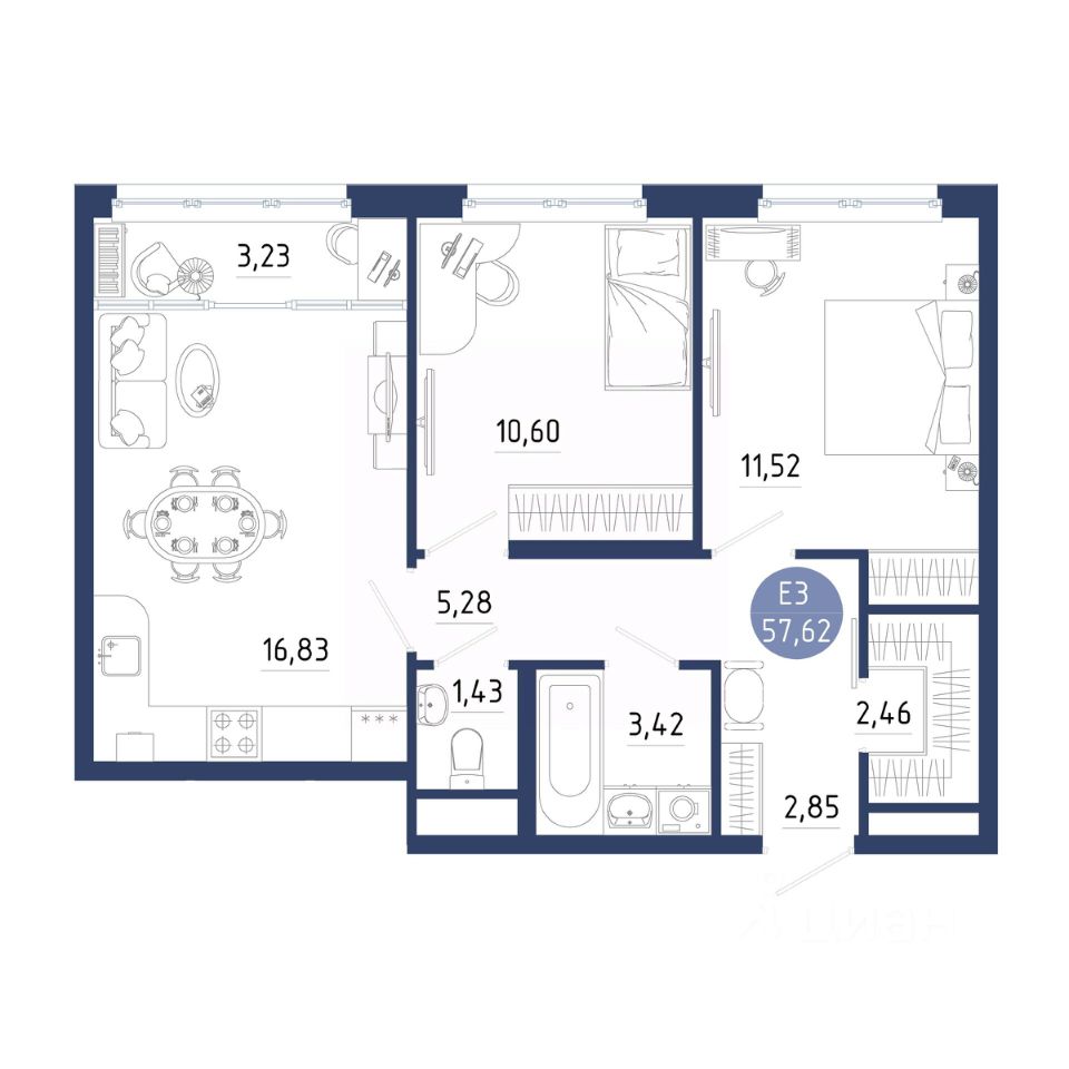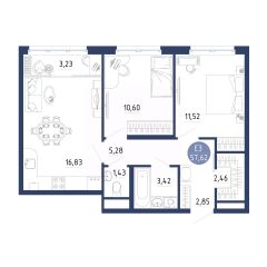 Общая площадь57,62 м²