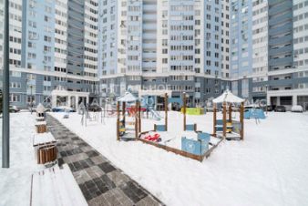 Закрытая территория с благоустроенной детской и спортивной площадкой, рядом наземный и многоуровневый паркинг.