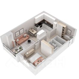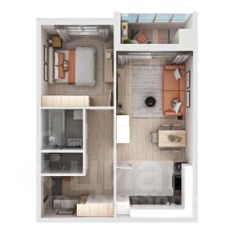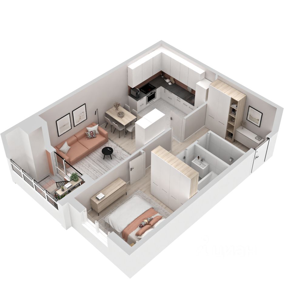 Квартира включает в себя вместительную кухню-гостиную 23,70 кв.м., где вы сможете проводить время с семьей и друзьями, а также комфортабельную комнату, обеспечивающую уединение и отдых.