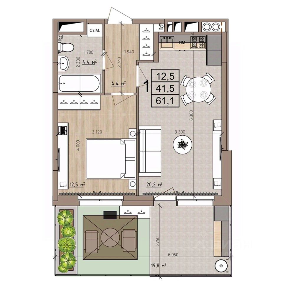 Квартира с собственной террасой! Вы покупаете не только жильё, но и собственный зеленый дворик для барбекю, детского бассейна, качелей, тренажёрного зала, летней оранжереи и так далее - на ваш вкус.