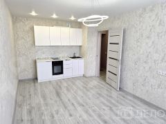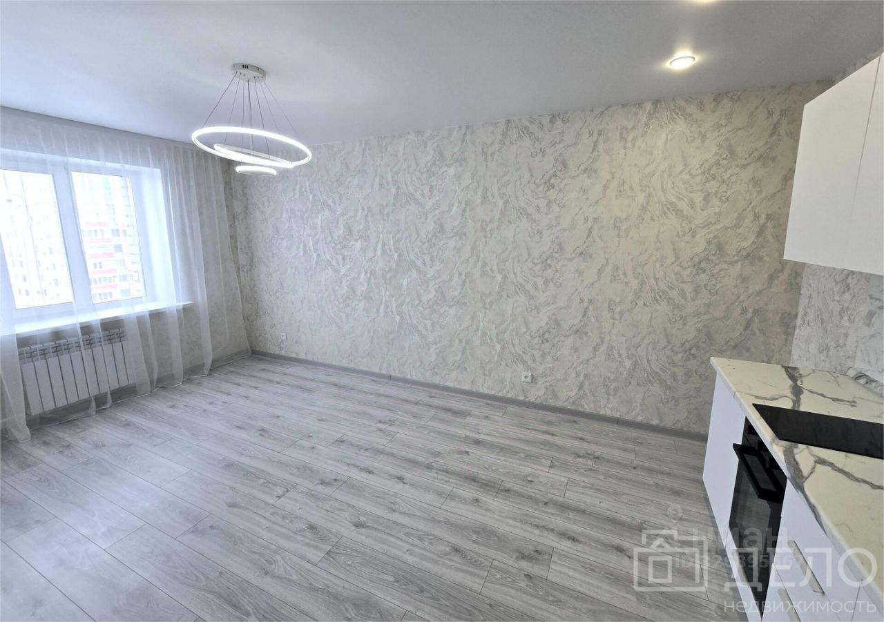 Современная квартира 34 м² с отдельной спальней и просторной кухней-гостиной.