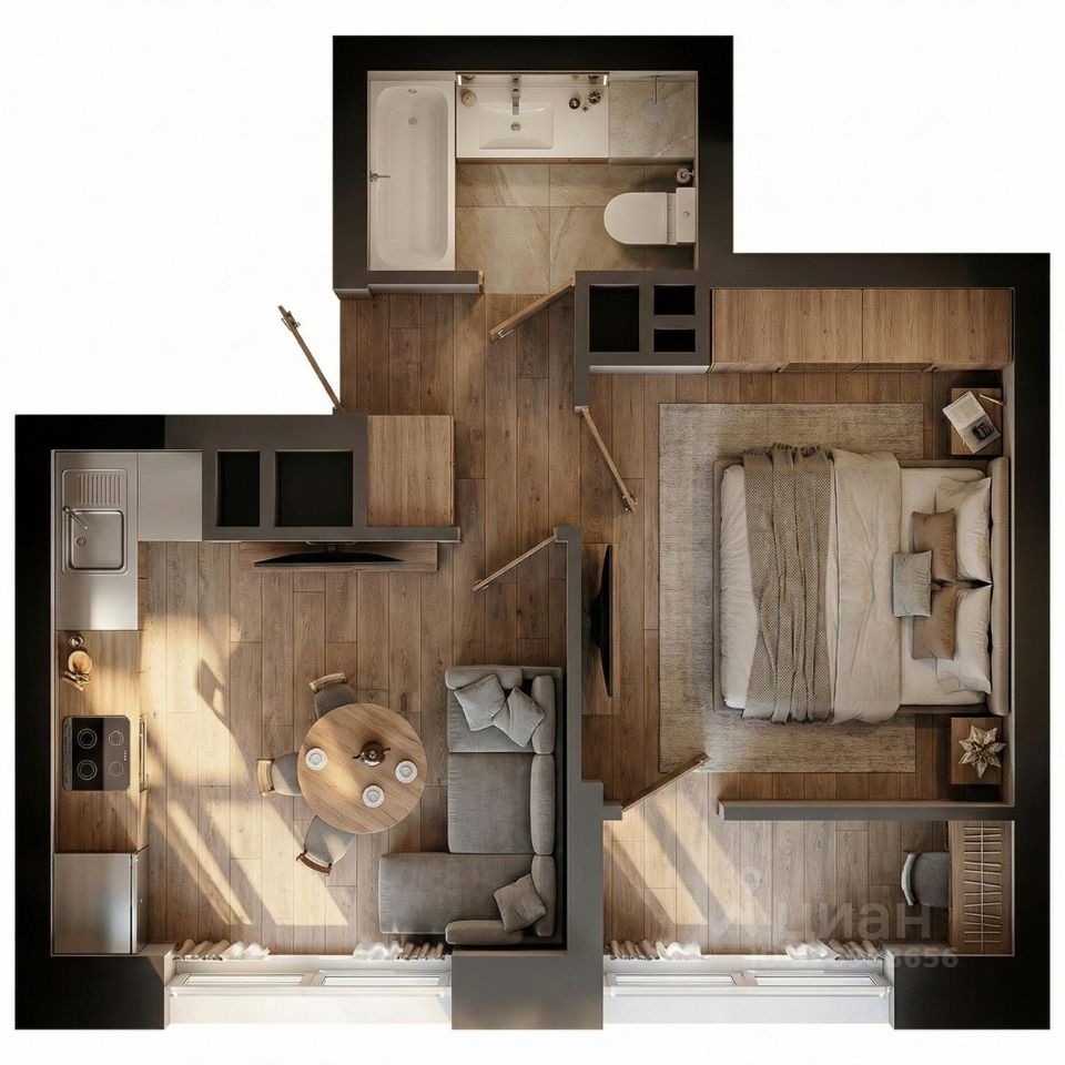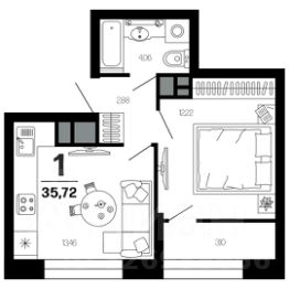 Продается 1 комнатная квартира в ЖК ТРИНИТИ на ул. Новаторов. Площадь квартиры 35,72 кв м, расположена на 12 этаже 21 этажного здания.