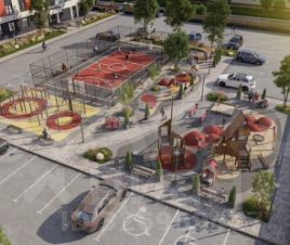 Проектом предусмотрен современный детский городок с мягким покрытием, для взрослых и детей постарше уличные тренажеры и большая многофункциональная спортивная площадка. На ней можно всей семьей сыграть в футбол, волейбол или попробовать себя в баскетболе.
