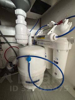 - Установлена система обратного осмоса ёмкость, в которой хранится запас очищенной воды, очищенной обратноосмотической мембраной