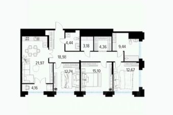 Площадь квартиры 102 кв. м с потрясающим видом на город с высоты 17-го этажа. Объект расположен в пешей доступности от центра, что позволит вам наслаждаться всеми преимуществами городской инфраструктуры.
