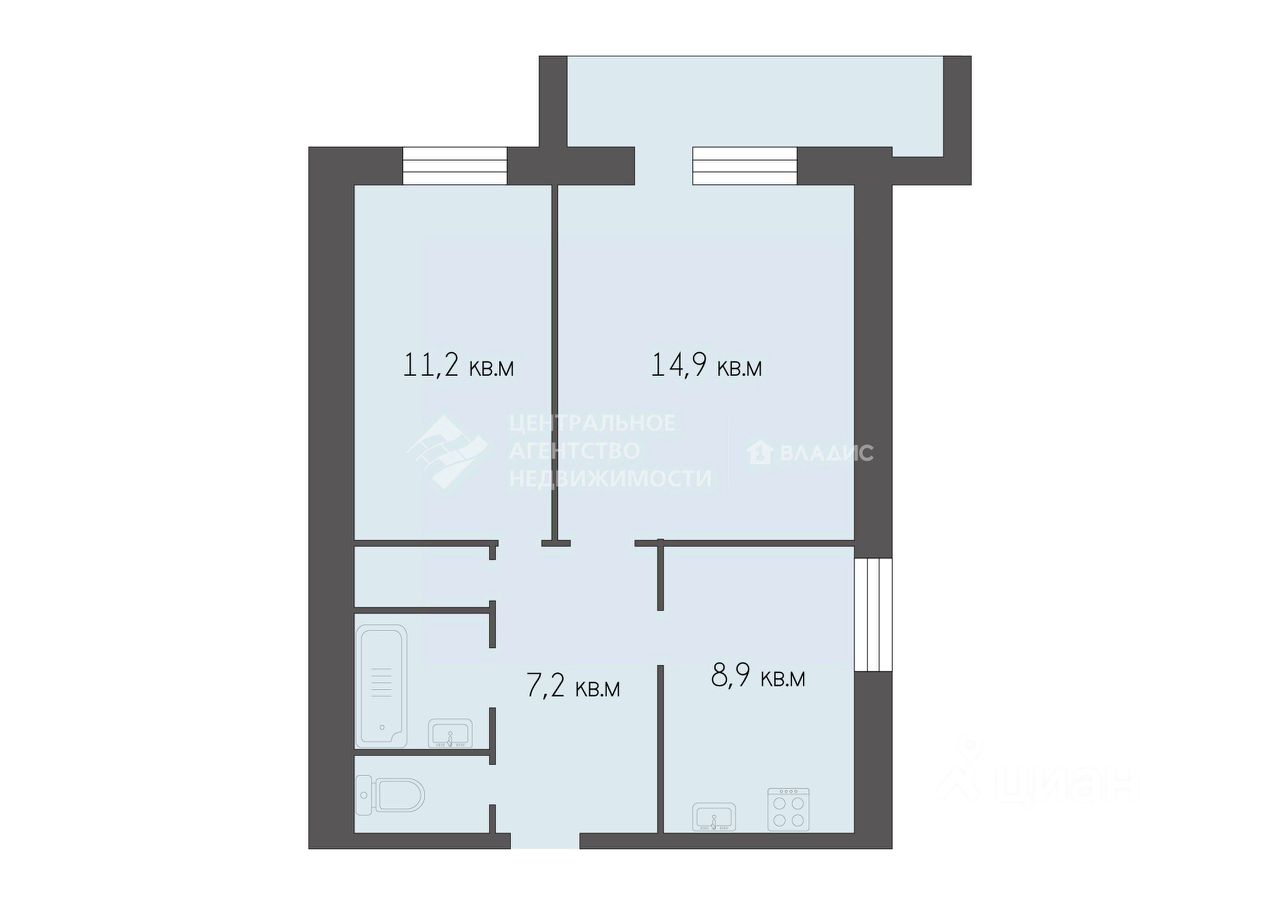 Квартира расположена на третьем этаже девятиэтажного кирпичного дома 1983 года постройки. Высота потолков — 2,5 метра, общая площадь — 47,4 кв. м, жилая — 26,1 кв. м, площадь кухни — 8,9 кв. м. Комнаты изолированы, что обеспечивает дополнительную приватность и удобство.