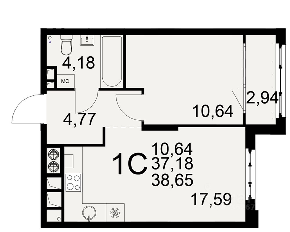 Общая площадь37,18 м²