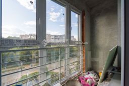 Общая площадь квартиры — 57,1 кв. м, жилая — 20,7 кв. м, площадь кухни — 19 кв. м. Высота потолков — 2,7 м. Комнаты изолированы, окна выходят на улицу. В квартире выполнен частичный дизайнерский ремонт в туалете и ванной комнате, есть лоджия. Квартира угловая, есть дополнительная тепло- и шумоизоляцию.