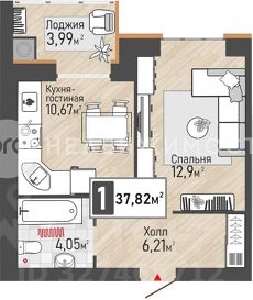 Общая площадь квартиры составляет 37,8 квадратных метров, из которых 13 квадратных метров приходится на жилую площадь, а 10,7 квадратных метров — на кухню. Наличие лоджии делает квартиру ещё более функциональной и удобной для проживания.