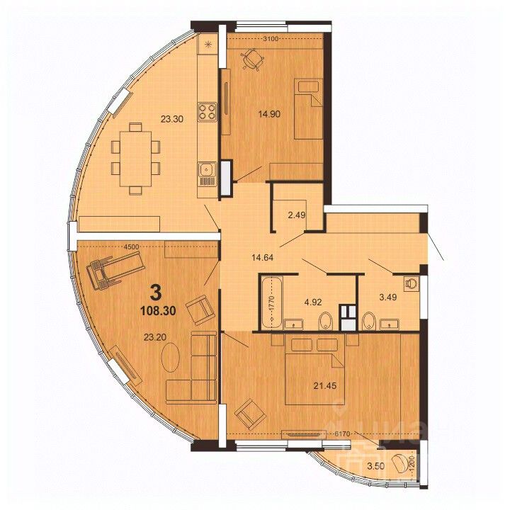 Продается просторная и светлая трехкомнатная квартира площадью 112,8кв.м с учетом лоджии 3,5кв.м, с большой кухней - гостиной 23,3кв.м в новом ЖК Паруса. Жилой комплекс находится в 10-минутной доступности от центра города на Солотчинском шоссе, возле ТЦ Круиз.