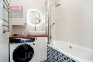В ванной сделана удобная ниша под стиральную машинку - в остальных таких же квартирах она стоит на кухне, а так же удобный узкий шкаф под химию и парфюмерию.