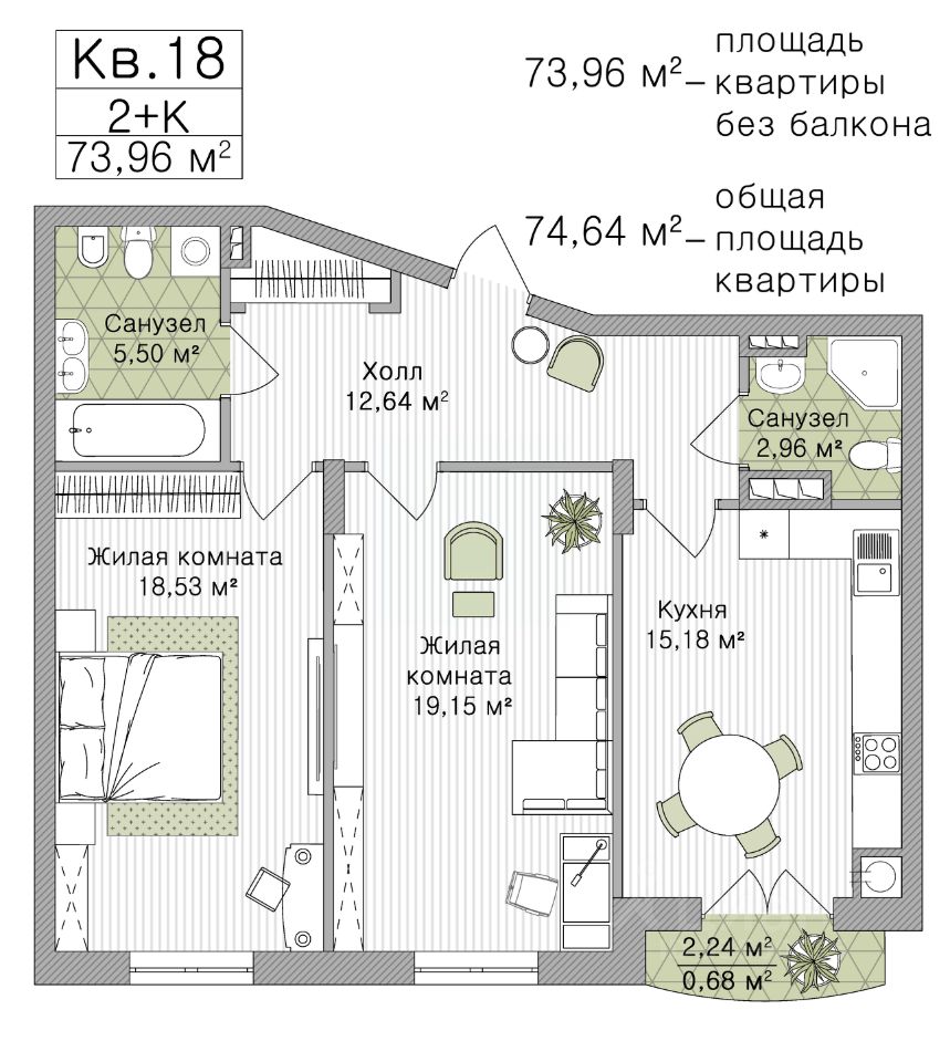 73,96 м²