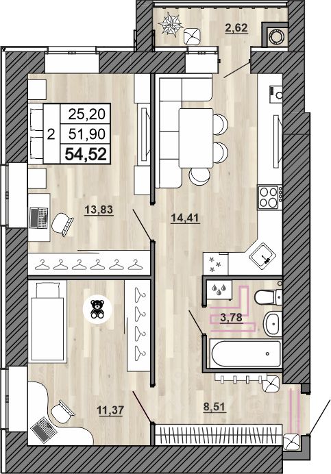 2-х комнатная квартира в жилом комплексе СОКОЛ СРОК СДАЧИ ДОМА - 3 квартал 2027 года. Идеальная планировка для пары. Умное зонирование: дневная зона для общения, ночная — для отдыха. Свет с двух сторон. Планировка, которая думает за вас: Четкое разделение на кухню-гостиную (14,41 м²) для активной жизни и две спальни (13,83 м² и 11,37 м²) для отдыха. Окна на две стороны: Это преимущество обеспечивает необычайно светлую и воздушную атмосферу в квартире. Помещения равномерно освещены и прекрасно проветриваются. Философия разумной достаточности: Здесь нет лишних, неиспользуемых метров. Каждая зона функциональна: коридор (8,51 м²), лоджия и санузел спроектированы с учетом повседневных нужд. Премиальная базовая отделка White Box Premium: идеально ровные стены и надежная дверь для вашего дизайна. Окна премиум-класса гарантируют тишину и тепло в квартире круглый год. Индивидуальное отопление - ваш личный комфорт и управление температурой в любое время. Теплые полы установлены во входной зоне, ванных комнатах и санузлах, даря приятное тепло босым ногам даже в самый холодный день. В доме установлена современная система очистки воды. Она гарантирует, что вода из-под крана будет не только безопасной, но и приятной на вкус, что важно для готовки, питья и ежедневного использования. ЖК "Сокол" — это не просто метры, а тщательно подготовленное пространство, где каждая инженерная система и деталь отделки работают на ваш комфорт, здоровье и экономию. Философия ЖК "Сокол" — это осознанный уединённый формат. Всего 60 семей в одном подъезде создают приватное и безопасное сообщество, где ценится личное пространство. Готовая инфраструктура на улице Крымской Всё для жизни — школы, сады, магазины и парки — уже находится в шаговой доступности, не нужно годами ждать развития района. Сбалансированное благоустройство территории Во дворе созданы продуманные зоны для отдыха, игр детей и занятий спортом, чтобы вам не нужно было искать их далеко от дома. Многоуровневая безопасность на территории и в доме Современные системы безопасности создают спокойную и защищенную среду для жизни всей вашей семьи прямо с порога дома. Проверенное качество строительной компании "Триумф" Вас ждут надежные технические решения и высокий стандарт исполнения, уже доказанные успехом новостроек в Рыбном. ВСЕ ВИДЫ КРЕДИТОВАНИЯ БЕЗ ПОСРЕДНИКОВ И УДОБНЫЕ СПОСОБЫ ОПЛАТЫ: - Семейная ипотека - Ипотека без первоначального взноса - Оплата или первоначальный взнос по материнскому капиталу - Рассрочка платежа Бесплатная финансовая консультация