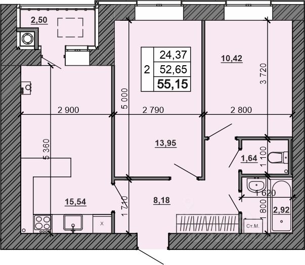 Общая площадь55,15 м²