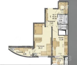 Общая площадь49,4 м²